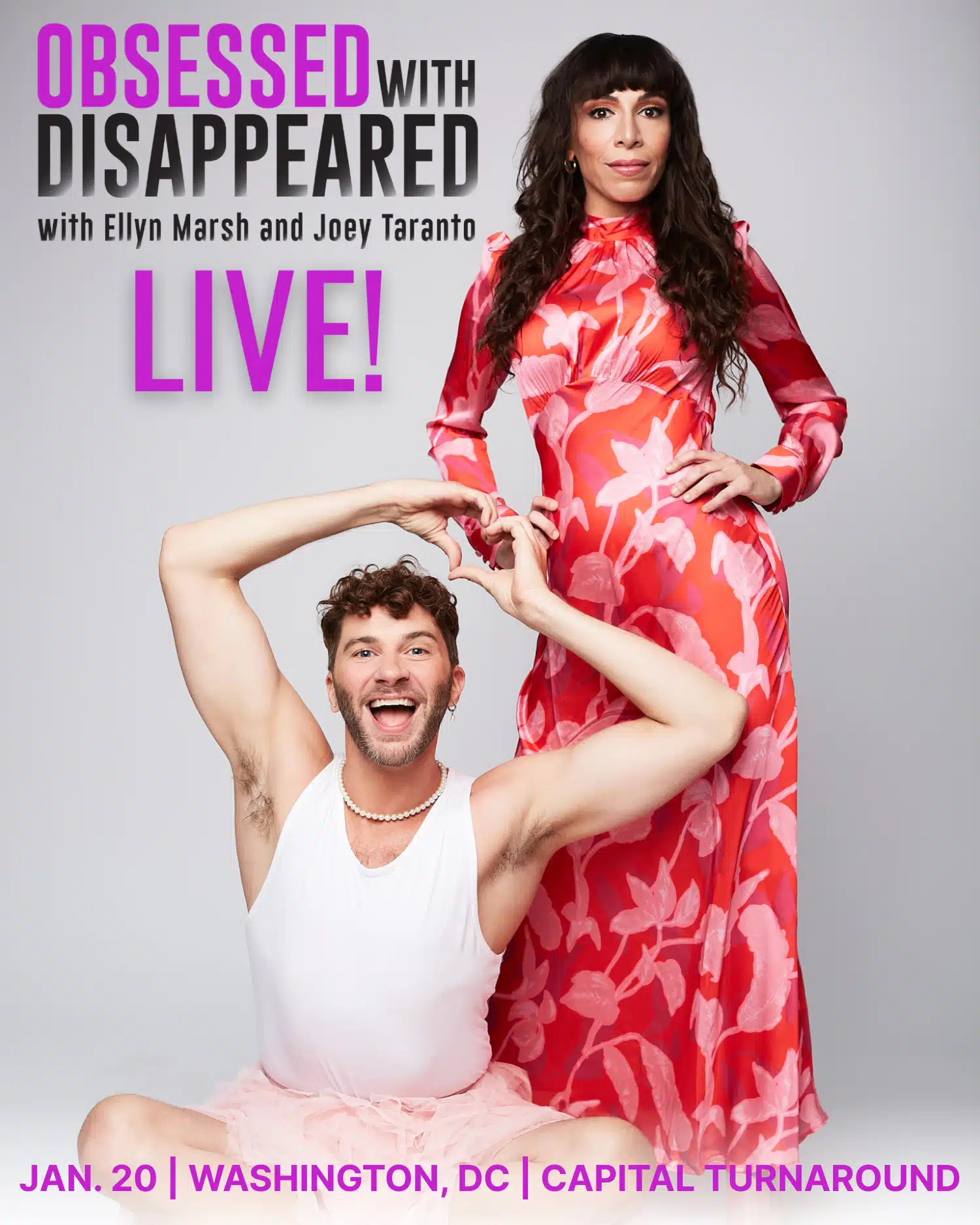 Ellyn Marsh and Joey Taranto are bringing their hit true crime / comedy podcast “Obsessed With: Disappeared” to the stage! Join them on tour as they recap an episode of one of their (and your!) favorite true-crime TV shows. Ellyn and Joey are long-time friends from performing together on Broadway, so they’re obsessed with each other, trash TV, and all things true crime. Expect their signature mix of humor and heart (and let’s be honest, they will probably randomly break out into song) as they break down one of the wackiest cases from the best true crime series that campy television has to offer!
